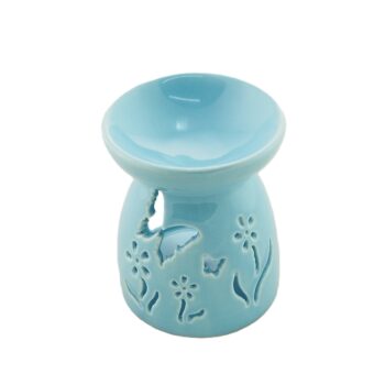 Κεραμικός αρωματιστής στρογγυλός με ανάγλυφο σχέδιο πεταλούδα και λουλούδια 8χ10εκ. Βαθύ άνω μέρος 7,5χ2,5εκ. Διατίθεται mix σε λευκό & σιέλ.